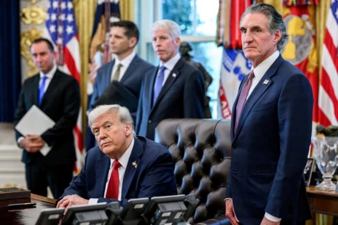 President Donald Trump answers questions from members of the media on Oct. 6, 2025, in the Oval Office. (Official White House Photo by Joyce N. Boghosian)